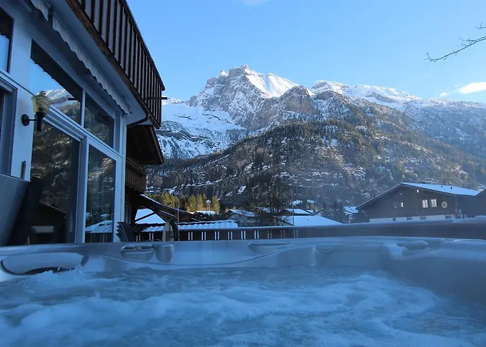Oferujący Gościom autobus wahadłowy, Apartament Toni'S Alpine Loft Kandersteg znajduje się 60 km od lotniska Berno. 2-pokojowy apartament zapewnia kryty basen oraz taras z widokiem na górę.